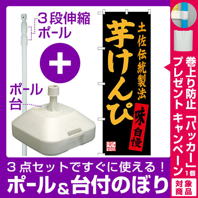 【プレゼント付】【3点セット】のぼりポール(竿)と立て台(16L)付ですぐに使えるのぼり旗 芋けんぴ 土佐伝統製法 (SNB-3450)