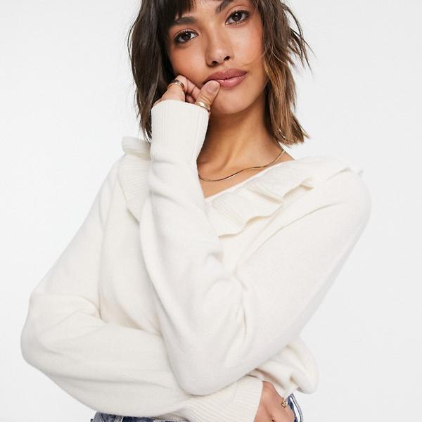 アンドアザーストーリーズ & Other Stories &OtherStoriesリサイクルウールフリルネックラインニットジャンパーオフホワイト トップス レディース 女性 インポートブランド 小さいサイズから大きいサイズまで
