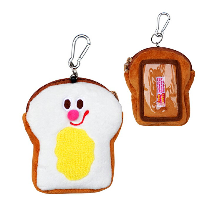 【メール便対応】バタートーストICパスケース GLADEE(グラディー)・とけたバターがポイントのトーストキャラクターがポップでかわいいICパスケース♪ホルダー付きで鞄などに取り付けでき、伸びるリールも付いて便利!小銭も入るファスナーポッケ!誕生日プレゼント